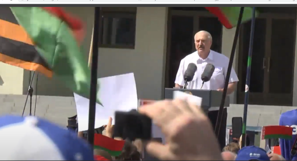 Сам Лукашенко также выступил сегодня на площади, когда пришел на митинг своих сторонников.