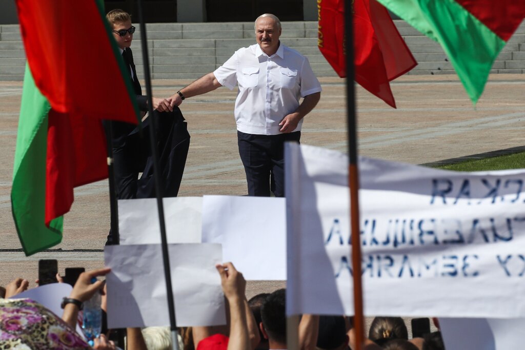 В воскресенье в Минске президент Беларуси Александр Лукашенко, выступая на акции в свою поддержку, вновь подчеркнул, что не допустит развала государства. "Мы построили с вами, при всех сложностях, при всех недостатках, красавицу страну. Кому вы ее решили отдать? Если кто-то хочет отдать страну, даже когда я буду мертвым, я этого не позволю", - заявил белорусский лидер. По его мнению, Беларусь погибнет как независимое государство, если согласится провести повторные выборы, к чему призывает "натовское руководство". Он отметил, что эти призывы звучат со стороны Литвы, Латвии, Польши и Украины. "Кругом посмотрите: танки, самолеты на взлете в 15 минутах от наших границ", - добавил, обращаясь к своим сторонникам белорусский президент.
