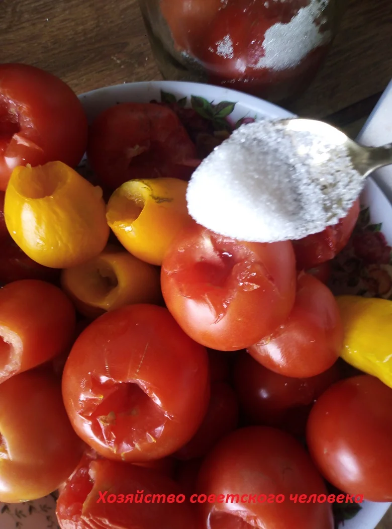 Помидоры получатся нежные, с очаровательным натуральным вкусом, поэтому и называются они у меня в семье "Сладенькие".