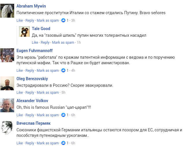 На последок посмотрите, как возмущаются некоторые граждане, этой новости. Мне прям улыбнуло с них))) И спасибо Италии, что не прогнулась перед штатами!