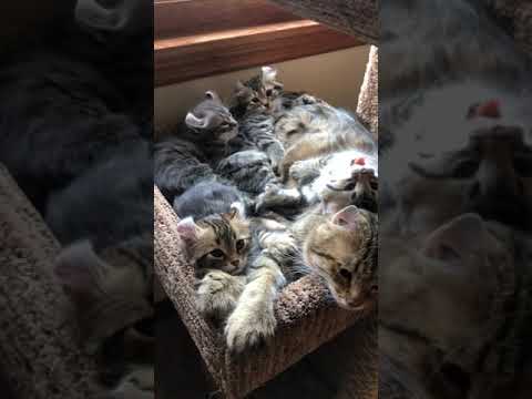Occurred on August 8, 2020 / New Hope, Alabama, USA "These are Highlander aka Highlander Lynx cats. The mother cat and her four kittens. They love sleeping, ...