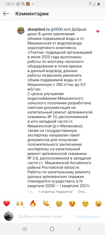 Это все здорово и замечательно. А у нас в ст.Мишкинская воды нет и неизвестно когда будет, в школе тоже. Вот и попитайтесь ребята.