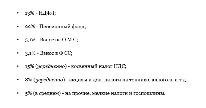 А если посчитать все налоги, которые люди платят в России, то процент будет очень высоким.