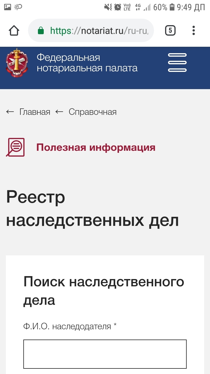 С этого года можно легко проверить информацию об открытии наследственного дела, не выходя из дома. Достаточно просто зайти на сайт Федеральной нотариальной палаты, ввести Ф.И.О. и дату рождения предполагаемого наследодателя – и сервис сразу отобразит информацию, было ли такое дело открыто, а если было, то будут указаны номер дела и данные нотариуса, где дело было открыто.