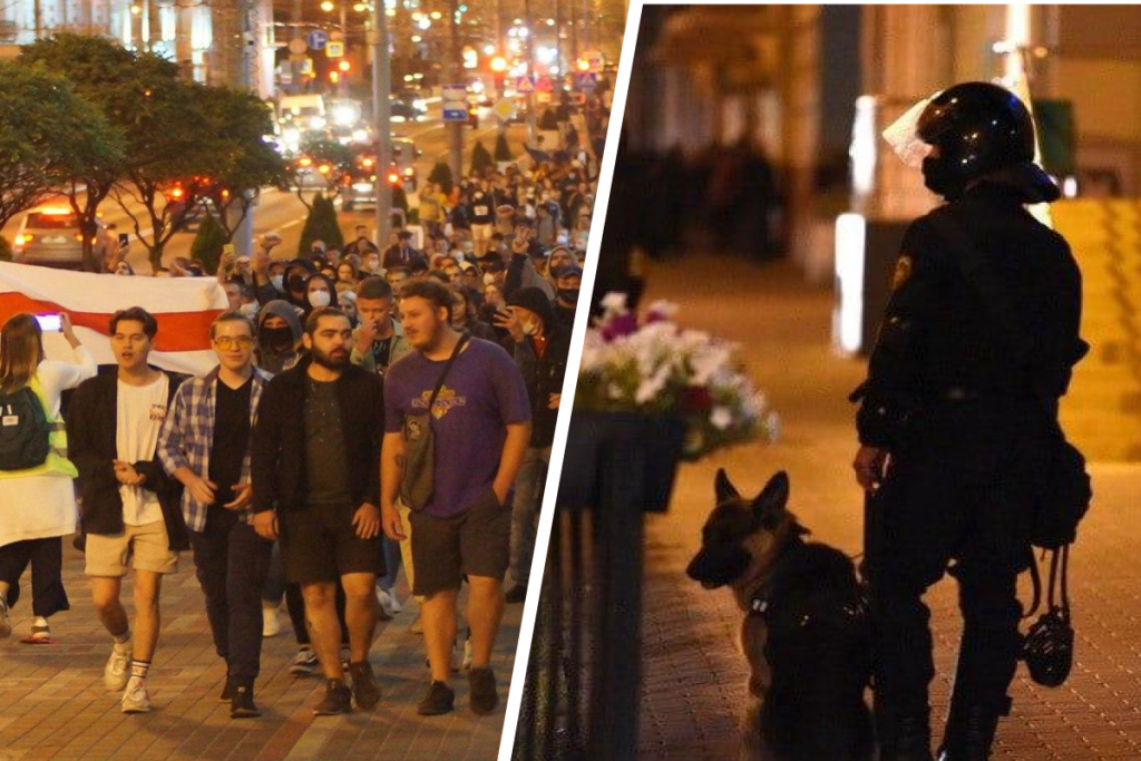 - оппозиционная - почти весь народ республики восстал против кровавого диктатора, который присвоил себе победу на выборах, мирный протест белорусов жестоко подавляют каратели из правительственных силовых ведомств.