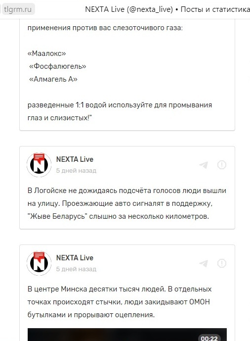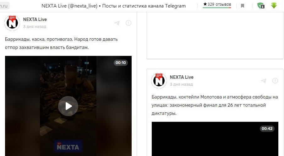 Скриншот страницы канала NEXTA Live