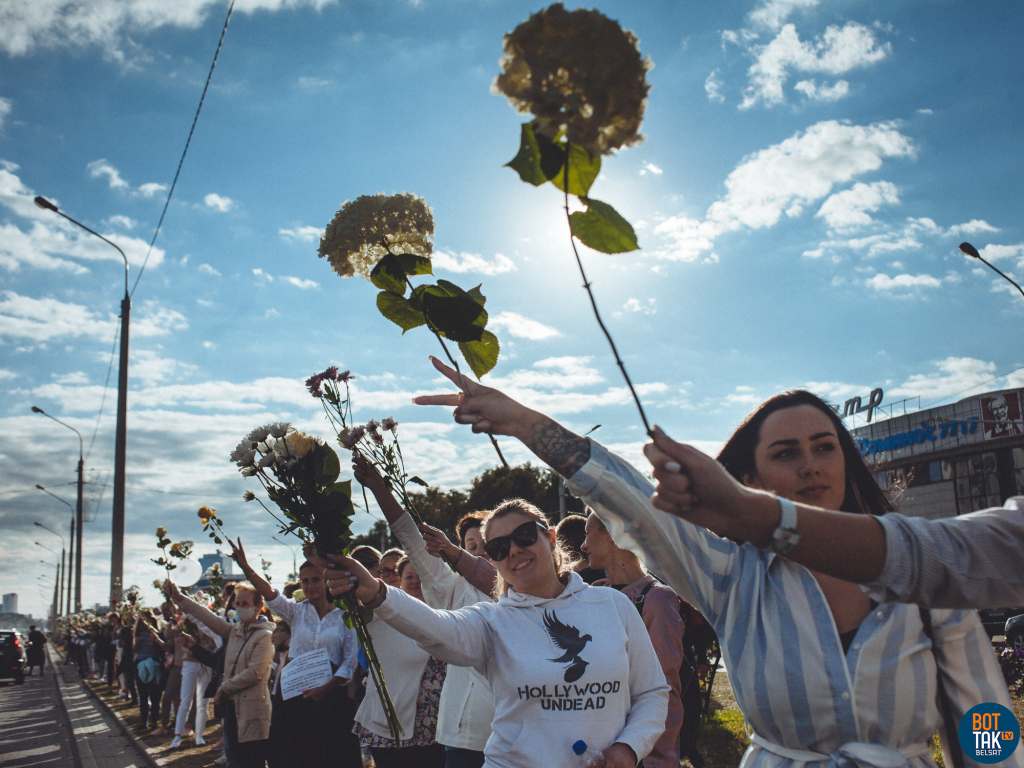 И вот в ближайшее время и должно было стать понятным, для чего был нужен весь этот стремительный треш. Но уж явно не для силового захвата власти и не для завоевания призрачной свободы. Средствами массовой информации и тем же каналом NEXTA Live начала усиленно рисоваться картина того, как каратели фашистского режима мордуют участников совершенно мирных шествий. В ход пошли и эмоциональные вскрики и всхлипы про "пытки в застенках" и "фашистских убийц". Ничего не скажешь, грамотно сработано, учитывая, насколько Белоруссия пострадала в Великой Отечественной войне. А уж когда вышли на сцену женщины и девушки в белых одеждах и с цветами в руках, тут уже и у самого диктатора должно было сердце дрогнуть. Девушки с цветами в руках обнимают строгих омоновцев, стоящих у правительственных зданий в полной экипировке: прямо рыцари и их дамы сердца из романов.