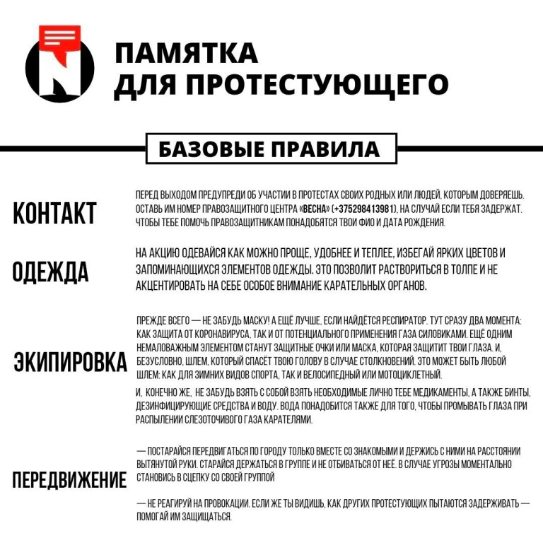 Памятка для протестующего на нескольких страницах. Фото взято с канала NEXTA Live