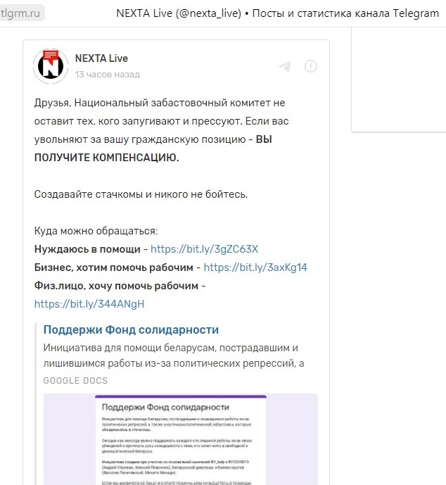 Обещание от мифического Национального забастовочного комитета материальной помощи протестующим. Фото взято с канала NEXTA Live