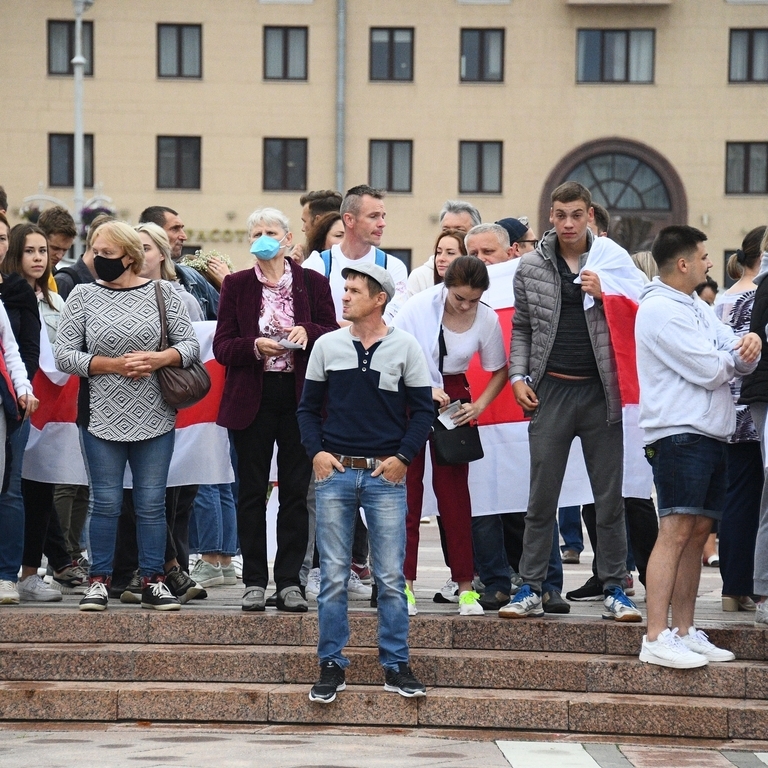 Большое количество грузовиков и автобусов с силовиками выставлено у Дома правительства, за зданием дежурят вооруженные люди. Проход к учреждению огорожен металлическими заграждениями. На площади Независимости и у отеля «Минск» люди в штатском снимают митингующих на камеры. Через громкоговорители собравшихся на площади призывают разойтись. По данным издания, там собралось несколько тысяч человек.