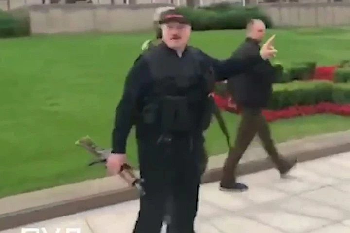 Лукашенко прилетел в Минск и вышел из вертолета с автоматом в руках