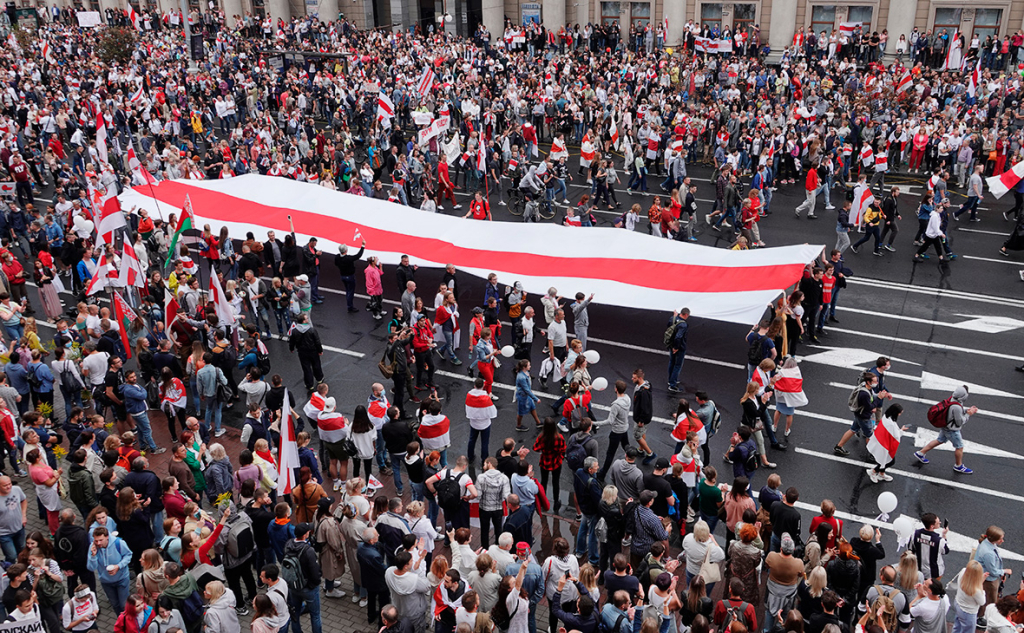 Оппозиция примиряет флаги, Лукашенко берется за автомат и призывает армию