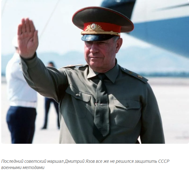 Вряд ли советские маршалы и генералы были малыми детьми или сумасшедшими, чтобы не понимать плачевных перспектив советского государства, да и трусами боевых офицеров, многие из которых прошли не только Афганистан, но и Великую Отечественную, уж точно не назовешь. Что же препятствовало военным взять власть в свои руки или, хотя бы, обеспечить приход к власти тех сил, которые могли бы сохранить советское государство?