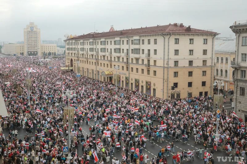 23 августа в центре Минска, как пишет Tut.by, собралось не меньше 100 тыс. человек. Однако ТВ «Беларусь 1» заявило, что на марш солидарности собрались 20 тыс. человек.
