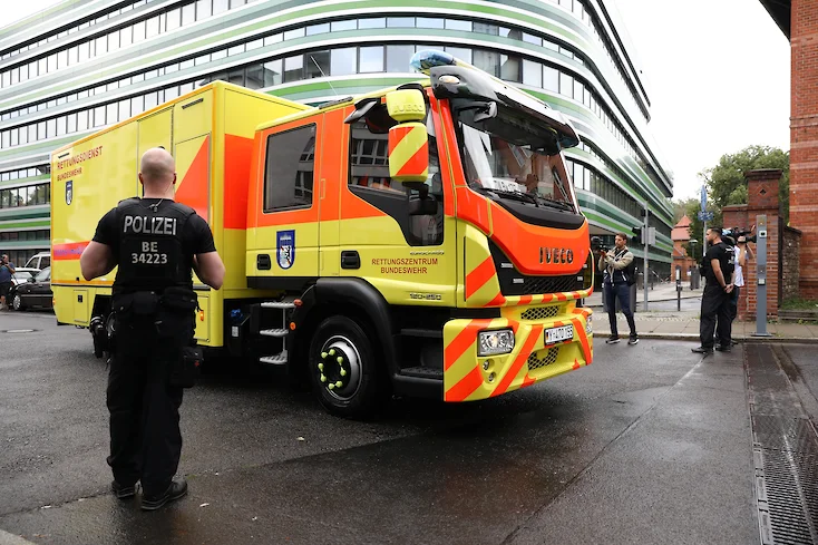 12:30 Немецкой медицинской бригаде было предложено проехать в БСМП №1 для осмотра пациента, проведения консилиума и совместной оценки необходимости и допустимости его транспортировки в Германию. В ответ представители немецкой бригады врачей заявили, что не намерены осматривать пациента в клинике. После чего, получив безвизовый коридор от миграционных властей, врачи отправились в гостиницу, которая им была предоставлена.