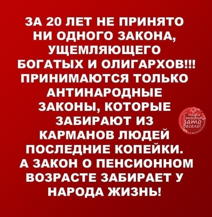 К сюрпизам от правительства россияне уже привыкли -- и к большим, и к маленьким! Даже интересно, чем нас удивить можно после коронавируса с последним "упадком" ру-бля? ? ?