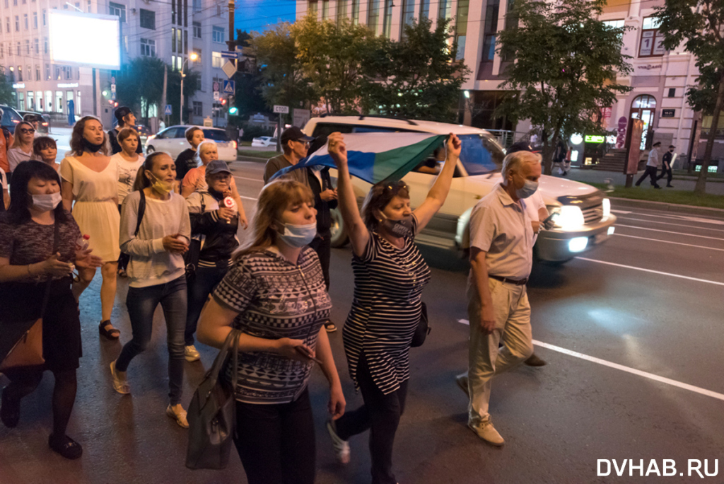 Однако поддержка приезжего мужчины вызвала у хабаровчан не благодарность, а совершенно обратную реакцию: людям не понравилось, что после окончания вечернего митинга мужчина продолжил стоять на площади и отказался ее покидать. Москвича попросили отойти подальше и не ассоциировать себя с участниками акции.