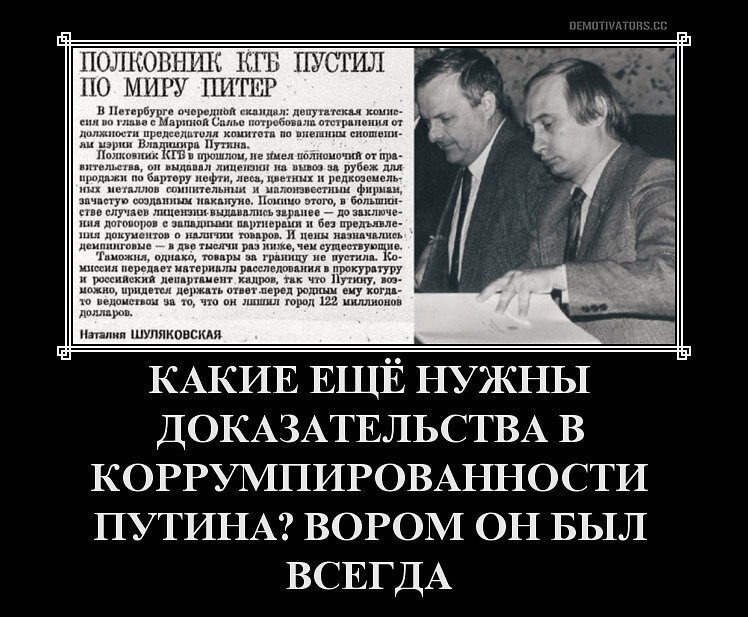 Да уж люди, походу вы не в себе. Вам видимо при Ельцине и Горбачеве лучше жилось? Путин все порушил? Так все было охрененно до него: перестройка, нищета, безработица, стрельба на улицах, рэкет, братва, ментовской беспредел, нищая армия, распиленные на металлолом подводные лодки и ракеты. Страх по вечерам выходить на улицу и выпускать детей. ВАМ ЭТОГО ВСЕГО НЕ ХВАТАЕТ? Вы бл...ь в своем уме вобще? Да вы сейчас живете в тысячу раз лучше чем до Путина. Опомнитесь полоумные, не будьте куклами, вами управляют. Точно так же нашим родителям говорили, что они очень плохо живут в СССР, и в итоге замутили перестройку и развалили великую страну, используя простой народ, наобещав более лучшей жизни. То же самое происходит и сейчас. Мы живем намного лучше других стран, разуйте глаза. Каждый видит то,что хочет видеть. В моем окружении бошьшинство людей трудятся, обеспечивают семьи, довольны и счастливы. Потому, что знают, что и как было раньше.