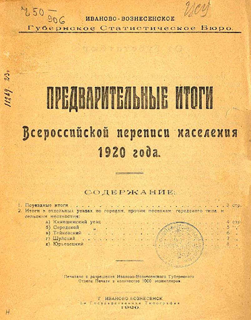 В 1920 году на территории России была проведена перепись населения. Она охватила 72% населения. Критический момент переписи — 28 августа — был выбран не случайно. Раньше на эту дату приходился церковный праздник. Достоверности получаемых сведений должны были способствовать сжатые сроки переписи: в городах ее предполагалось закончить за неделю, а в сельской местности — за две недели. Традиционно в перепись населения входил вопрос про вероисповедание, но, по предложению Владимира Ленина, в 1920 году он был исключен.