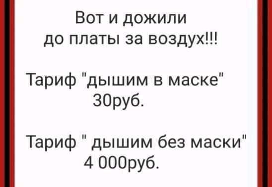 Хоть бы уже не палились с этой короной. И когда волна вторая начнётся знают, и когда закончится знают. Сами придумали, сами определили. То маски продать надо было да штрафы собрать, теперь вакцину впарить. Сами своим выхлопом дышите. А мы уж воздухом хотим дышать, пока бесплатный.
