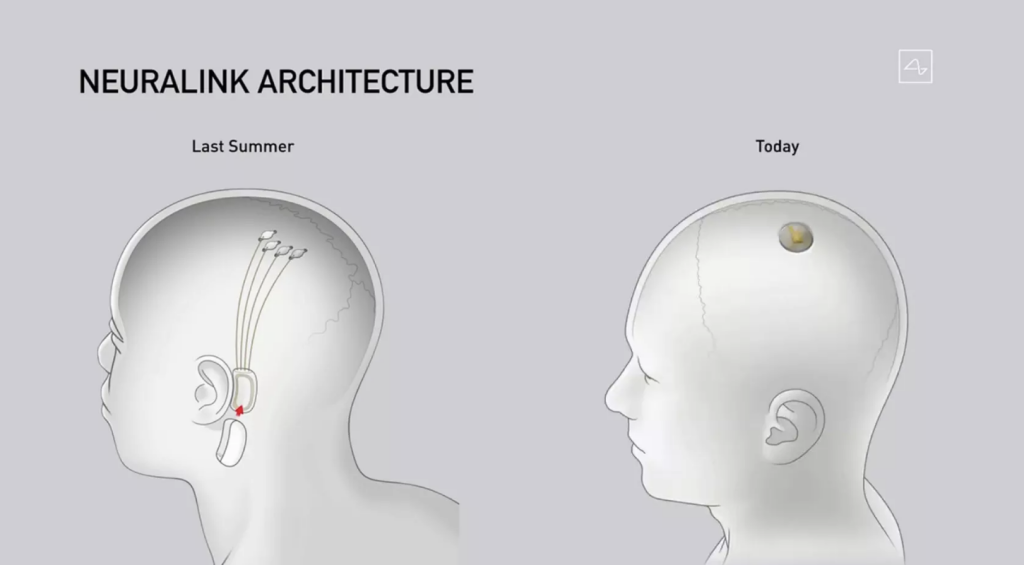 Маск представил вчера н. Устройство теперь размером с монету и почти незаметно, от него в кору головного мозга уходят 1024 электрода, которые могут как считывать сигналы от нейронов, так и стимулировать их. Гаджет управляется по блютусу — например, со смартфона. Neurolink успешно испытывают на свиньях, которых также показали зрителям. (Всех очаровала Гертруда, прекрасно живущая с имплантом уже два месяца.)