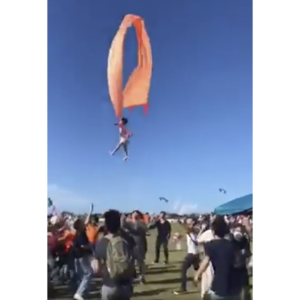 Во время фестиваля воздушных змеев трехлетняя девочка случайно запуталась в леере огромного оранжевого змея, который взмыл вверх и увлек ее за собой. Кувыркаясь в воздухе, она поднялась на несколько метров над землей.