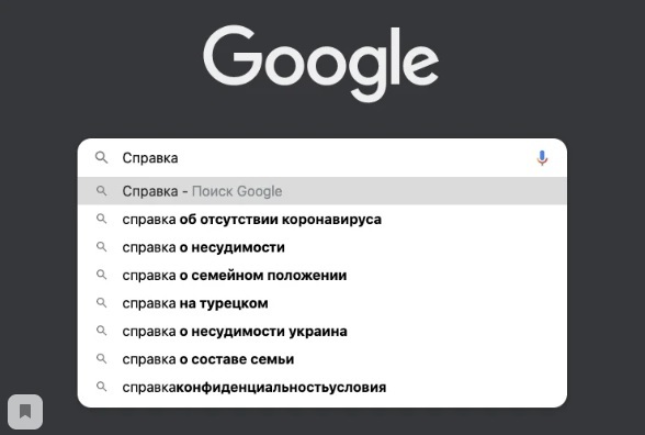 Бегать по поликлиникам и лабораториям, стоять в очередях, рискуя действительно заразиться какой-нибудь дрянью, включая тот же самый коронавирус, любителей мало. Поэтому один из самых распространенных запросов в интернете – справка от коронавируса. Вылезает на первом месте после того, как набрал слово «справка».