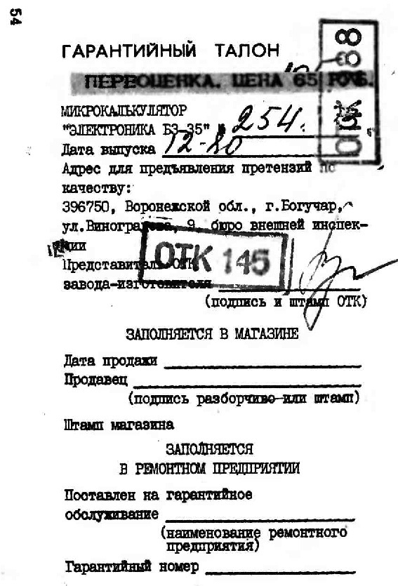 Микрокалькулятор «Электроника Б 3-35» без встроенных аккумуляторов;
