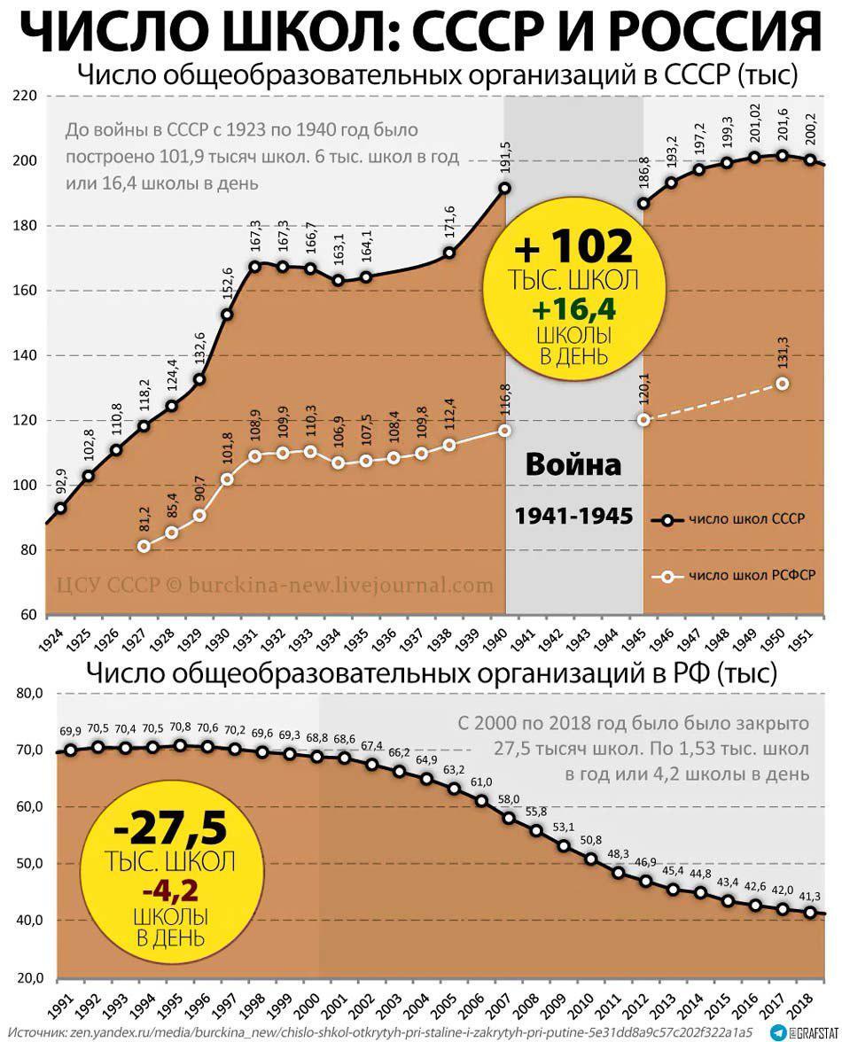 Т.е. число школ в РСФСР было примерно такое-же как и в дореволюционной России.