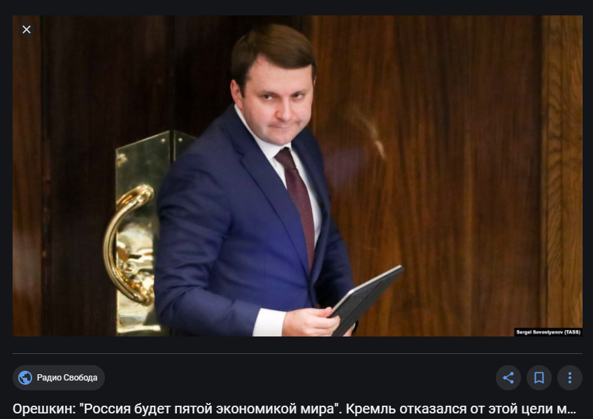 Далее. Даже в июльском указе главы государства нет цели вхождения России в пятёрку крупнейших экономик мира. А цель в этом указе такая "обеспечение темпа роста валового внутреннего продукта страны выше среднемирового при сохранении макроэкономической стабильности".