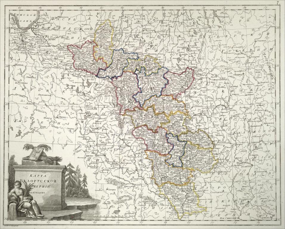 Разными цветами выделены уезды Белорусской губернии, если присмотреться, то видно, что в состав губернии входила только часть современной Республики Беларусь и плюс к этому районы современных Псковской и Смоленской областей РФ. Фото взято с ресурса Яндекс. Картинки