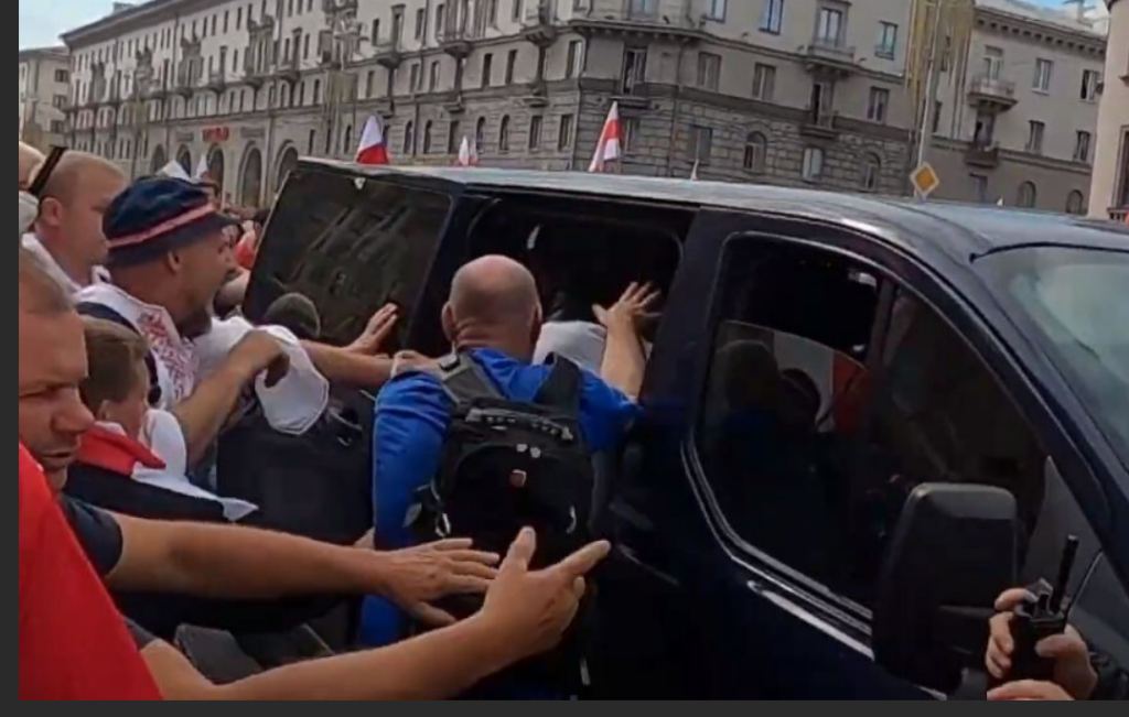 Толпа демонстрантов набросилась на машину милиции. Когда от милиции получили "ответку" дружно заверещали "о произволе" милиции, "зверствах" и "произволе"...Такова тактика мирной акции протестующих...Поздно вечером на улице Притыцкого 24-летний водитель на легковом авто BMW протаранил группу сотрудников милиции и скрылся с места ДТП. В результате наезда пострадали пять военнослужащих внутренних войск МВД в возрасте от 23 до 29 лет.