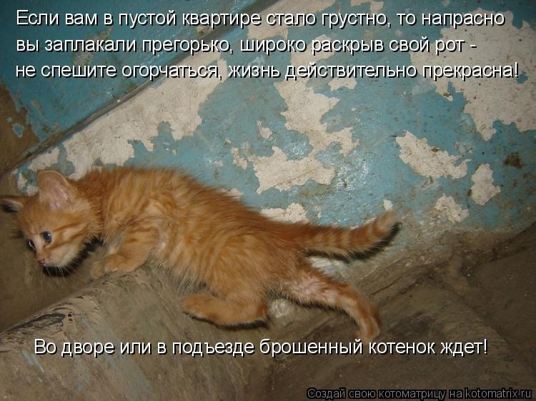Иду по ступенькам лестницы, сидит котенок. Маленький. Кто-то выбросил из своего дома, и, как человек "сердобольный", поставил ему коробочку.