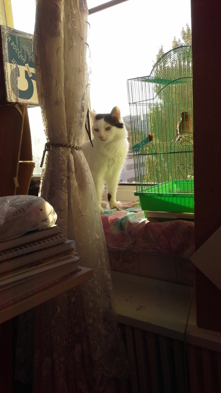 Собачку я сама недавно притащила, - чудом успела вытащить из-под колес, и не смогла оставить на улице. Но ее я пристроила в очень хорошие руки. У меня кошка должна была разродиться, я побоялась оставлять, 2 недели она у меня пожила, отмылась, отъелась, и переехала к хозяевам.