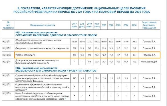 План национальных проектов, утвержденный в 2018 году, требовал снизить уровень бедности в этом году до 11,1%, а к 2024-му довести его до 6,6% - минимума в новейшей истории страны.