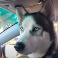 Хаски нашел друга в соседней машине