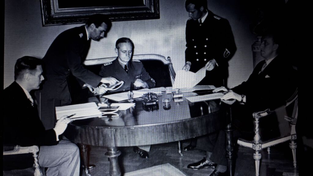 А вот подписание пакта о ненападении между главой министерства иностранных дел Латвии Мунстерсом и Рибентропом от 7 июня 1939 года. Не этот ли пакт послужил "спусковым крючком" второй мировой войны. Уже тогда Мунстерс заявил, что войска Латвии стоят на границе с СССР и готовы (слева сидит) к действиям. Латыши-то уповали на помощь Германии... И,как обычно,"обмишулились"?