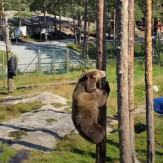Медведь забирается на дерево