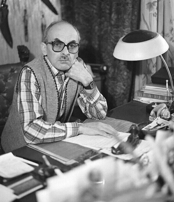 Булат Окуджава в своем на своем рабочем месте, 24 марта 1982 года. Фото Владимира Савостьянова /Фотохроника ТАСС/