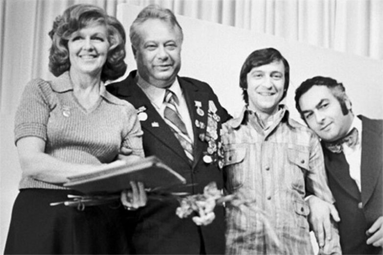 Валентина Леонтьева ~ телеведущая, Николай Озеров спортивный комментатор и знаменитые артисты эстрады Геннадий Хазанов и Левон Оганезов. 6 сентября 1972 года. Фото Валерия Шустова /РИА Новости/