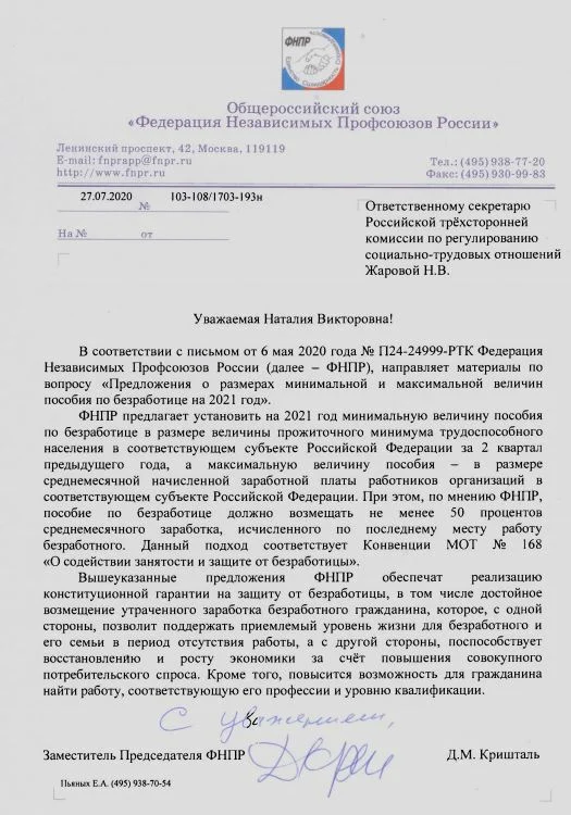 Письмо ФНПР