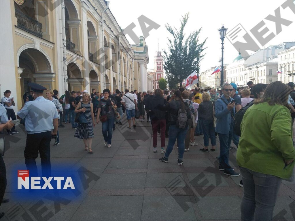 И в Санкт-Петербурге - посередине еле заметные флаги у Гостинного двора на Невском. Фото с канала NEXTA Live