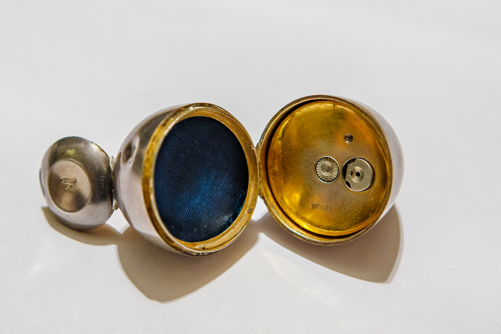 В пользу более раннего изготовления часов можно отнести крупнозернистую структуру серебра, крепление часов в футляре - с середины 18 века для крепления часов стали использоваться винтовые скобы, использование для защитного стекла циферблата горного хрусталя - технология начала 17 века...