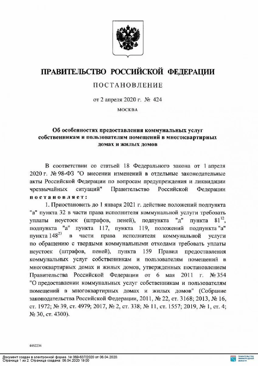Постановление Правительства № 424 от 02.04.2020 года, которое приостановило целый ряд правил, касающихся погашения коммунальных задолженностей на время пандемии, известно, пожалуй, каждому. Но вопросы все таки мне задают по этому поводу.