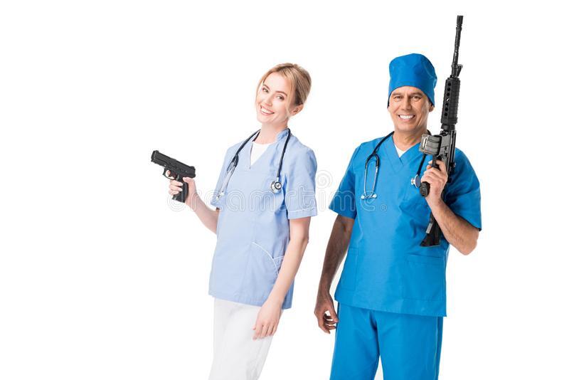 Мой муж работает на скорой. Ружья, правда, нет, а вот, под сиденьем монтировочка имеется, на всякий плжарный. Кат-то приехали на вызов к, мягко говоря, неадекватному пациенту. Не дождавшись полицейских, направились в квартиру, а оттуда амбал с топором... Еле ноги унесли, и тут подоспела полиция.