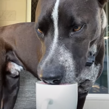 Собака поймана за чашечкой кофе