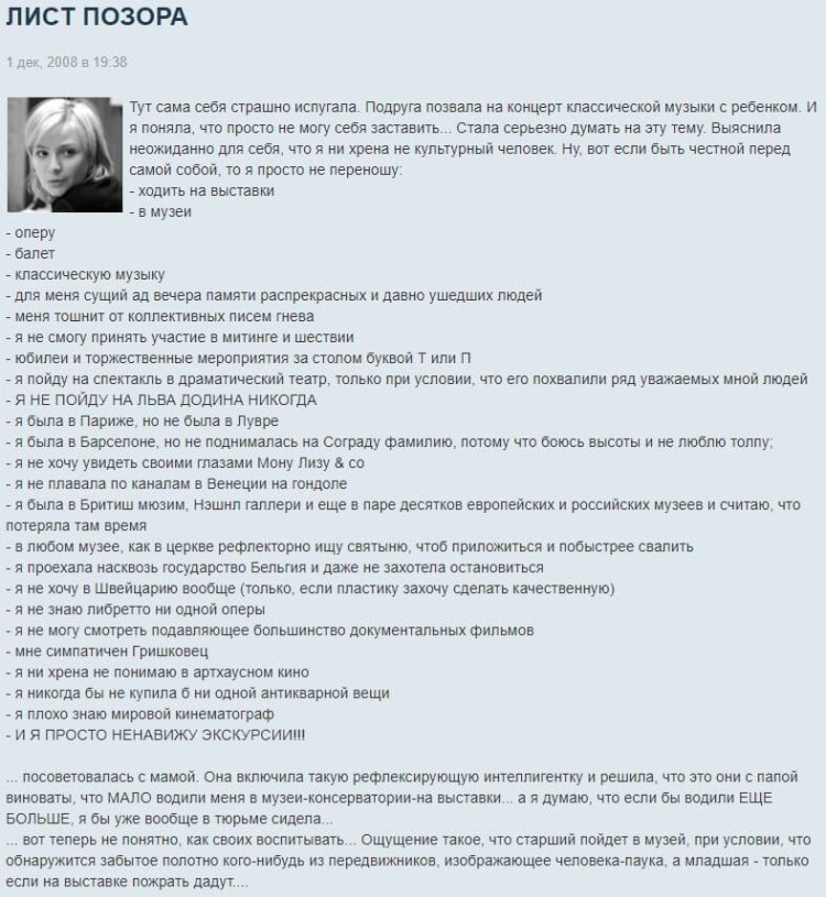 Вы прежде, чем минус ставите, посты читаете? Нашей министерше основы культуры не только родители, но и гимназия закладывала, а выросла неандерталка, шарахающаяся от МИРОВОГО культурного наследия. И теперь она отвечает за культурный облик страны!