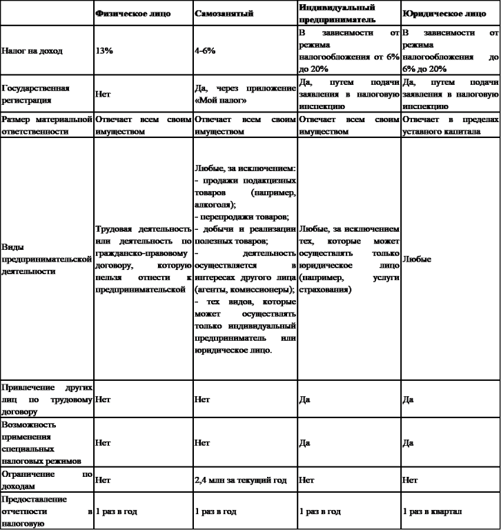 Давайте рассмотрим основные различия в осуществлении предпринимательской деятельности разными способами: