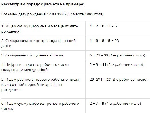 ● Если вы успели заметить, то для нашего времени цифр в расчете участвует 8 цифр: дата рождения 8 + 8 цифр из 4-х рабочих чисел — всего 16