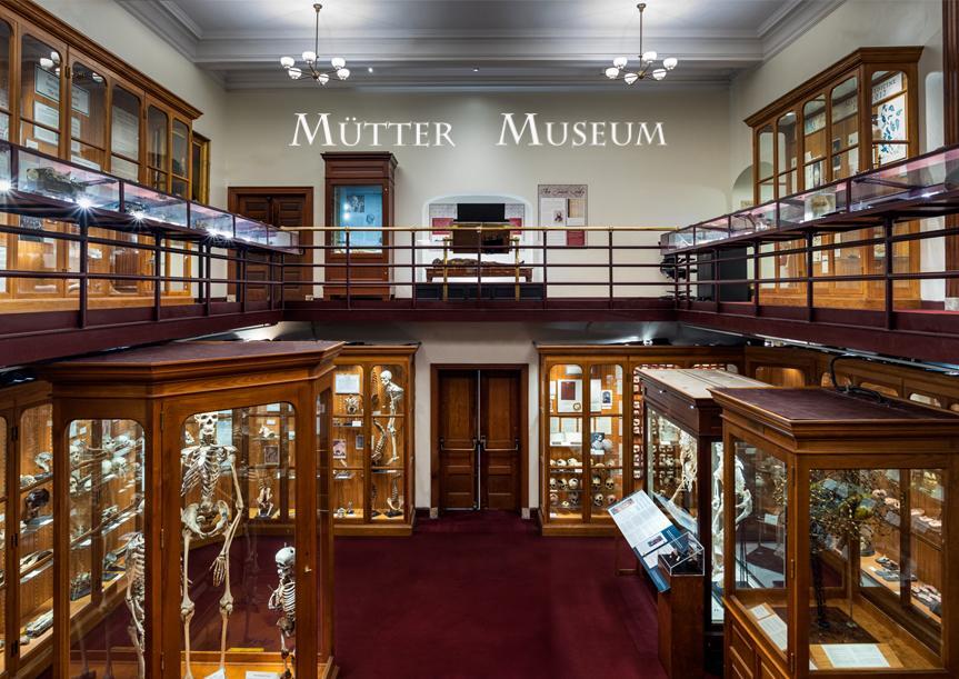 Музей Мюттера был открыт в начале 1750 года Бенджамином Франклином, но функционировать в полную мощь начал только к 1858 году - это музей медицинских патологий, старинного медицинского оборудования и биологических экспонатов, расположенный в Колледже врачей Филадельфии (College of Physicians of Philadelphia).